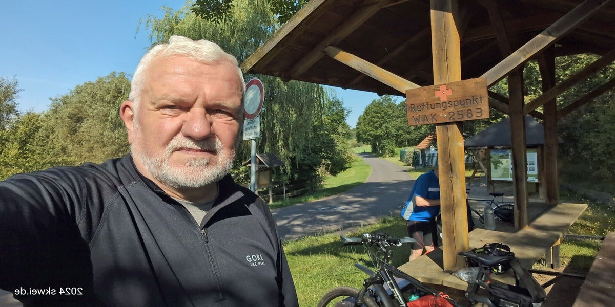 Unter der Autobahnbrücke bogen wir ab und radelten gemütlich über Burla nach Hastrungsfeld und Ettenhausen an der Nesse. Am Rettungspunkt WAK 2583 ist ein Rastplatz, wo wir eine Trinkpause einlegten und danach auf dem Nessetal-Radweg weiter über Melborn nach Wenigenlupnitz und dem Golfplatz fuhren. In der dortigen Pizzeria stärkten wir und mit einem halben Liter und einer Pizza.