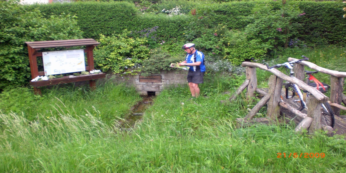 Die grüne Etappe führte durch das Quellgebiet der Tauber bei Wettringen. Nach einem kurzen Stopp an der Quelle fuhren wir hinüber ins Schwäbische an der A6 bei Schnelldorf. Zwischendurch haben wir auch noch einen Reifen geflickt, der plattgefahren war.