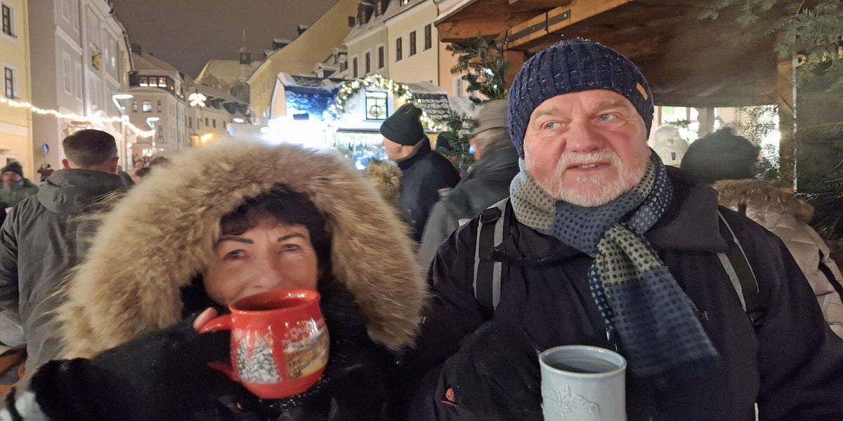 Zum Abschluss des Tages gab es in Schneeberg erst Kaffee und Kuchen in Familie bei unserer Verwandtschaft und anschließend einen gemeinsamen Besuch des dortigen Weihnachtsmarktes, der immer einen Besuch wert und deshalb gut besucht ist und ein breites Spektrum an alkoholischen und nicht alkoholischen Getränken zu angenehmen Preisen bietet.