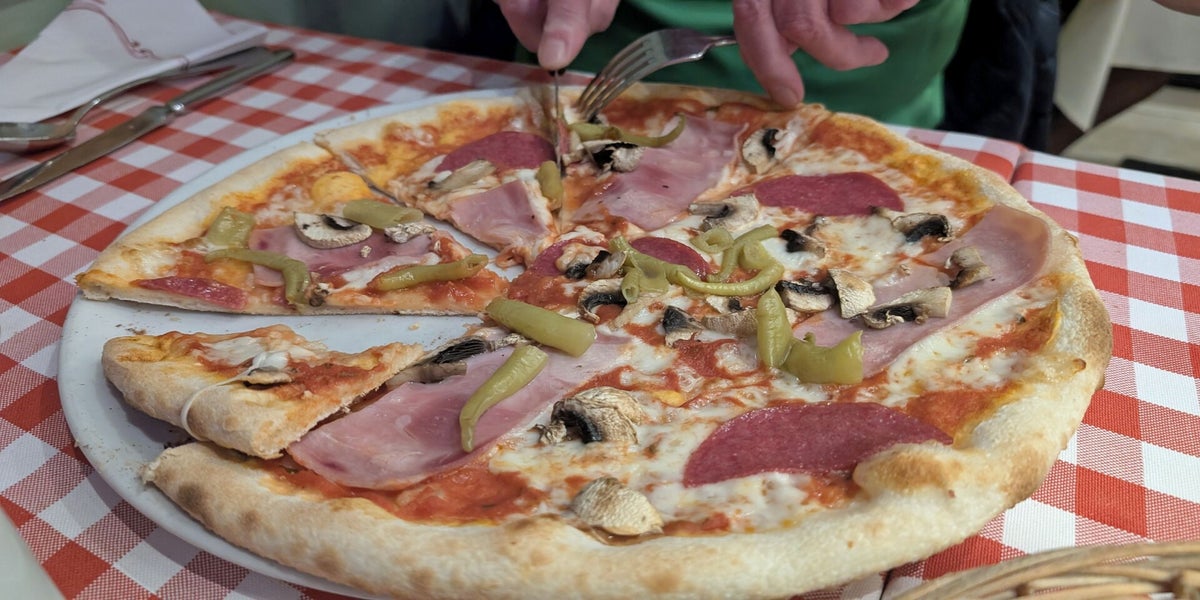 Nach einem kurzen "Frischmachen" ging´s in der Altstadt in eine Pizzeria und danach zurück zum Hotel. Am nächsten Morgen nach dem Frühstück liefen wir zu Fuß zum Treffpunkt, wo Karin ihre Cousinen und Cousins traf, die sie teilweise 50 Jahre nicht gesehen hatte, und sie gemeinsam den Termin wahrnahmen.